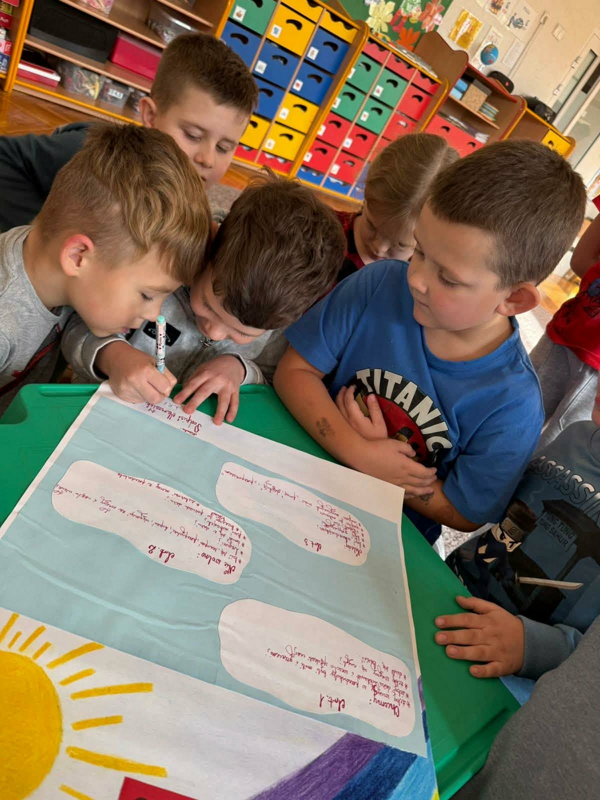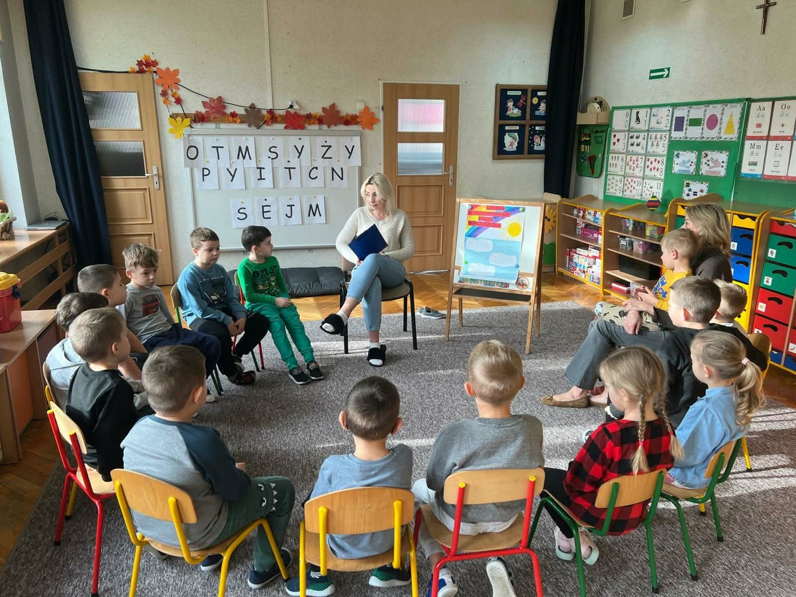 W ramach programu „Optymistyczne Przedszkole” dzieci wzięły udział w wyjątkowych zajęciach – Optymistycznym Sejmie. Przedszkolaki wcieliły się w role posłów i debatowały nad zasadami dobrego zachowania w przedszkolu. Dzieci uczyły się zabierać głos, słuchać innych oraz wspólnie podejmować decyzje poprzez głosowanie. Efektem spotkania było stworzenie „Ustawy o zachowaniu się dzieci w przedszkolu”, zawierającej najważniejsze zasady, takie jak bycie miłym, zgodna zabawa i wzajemny szacunek. To była cenna lekcja współpracy, odpowiedzialności i empatii w duchu optymizmu.