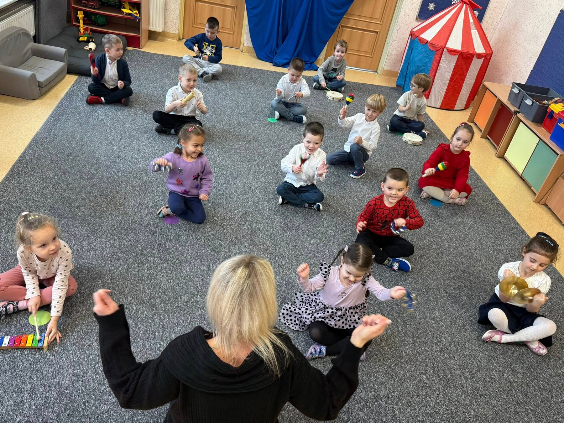 Zajęcia umuzykalniająco-rytmiczne realizowane w ramach projektu ,,Podniesienie jakości edukacji w przedszkolach samorządowych na terenie Gminy Miejskiej